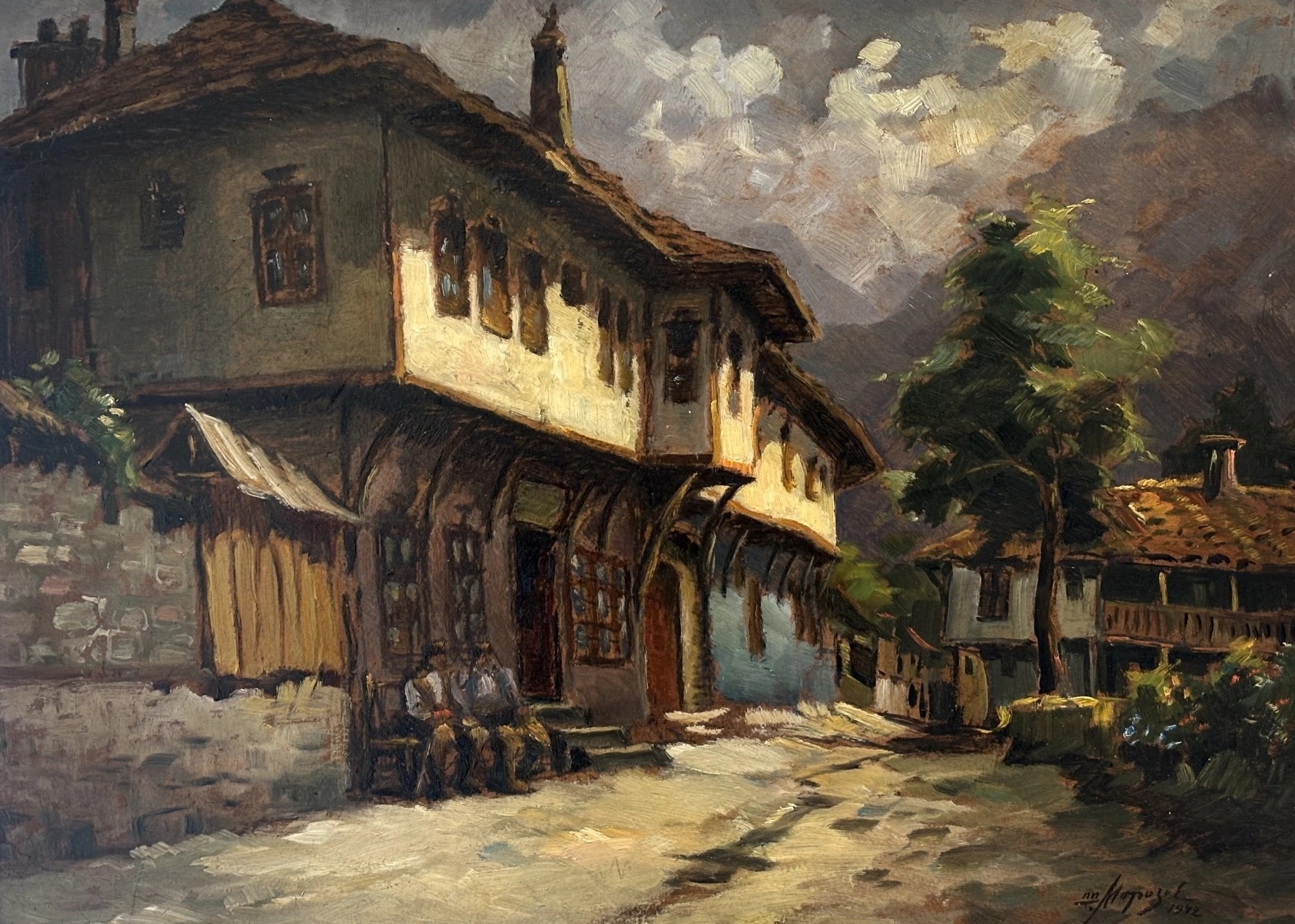 Друг автор, намерил немалко вдъхновение в българския бит, архитектура и може би най-вече в българския ландшафт е Петър Морозов. Художникът е роден в Русе през 1880. След като завършва Държавното рисувално училище, той заминава на специализация в Париж, където неговите преподаватели му представят акватинтата като графична техника. Това е била технологична новост за България и именно с живописните си акватинти той е най-популярен до ден днешен. Всъщност Петър Морозов е изключителен и в своите маслени произведения. Освен множеството емблематични портрети, той е истински майстор и на природния, и на градския пейзаж. Не би било преувеличено да се каже, че той умее „да рисува въздуха”, с което дава на платната си една особена, истински магнетична дълбочина. В изложбата намира място картината „Тетевен” от 1942 г., част от късното творчество на автора. Тя представлява одухотворен градски пейзаж, въплътил богата и сложна палитра от нюанси, характерни за живописния маниер на Петър Морозов.