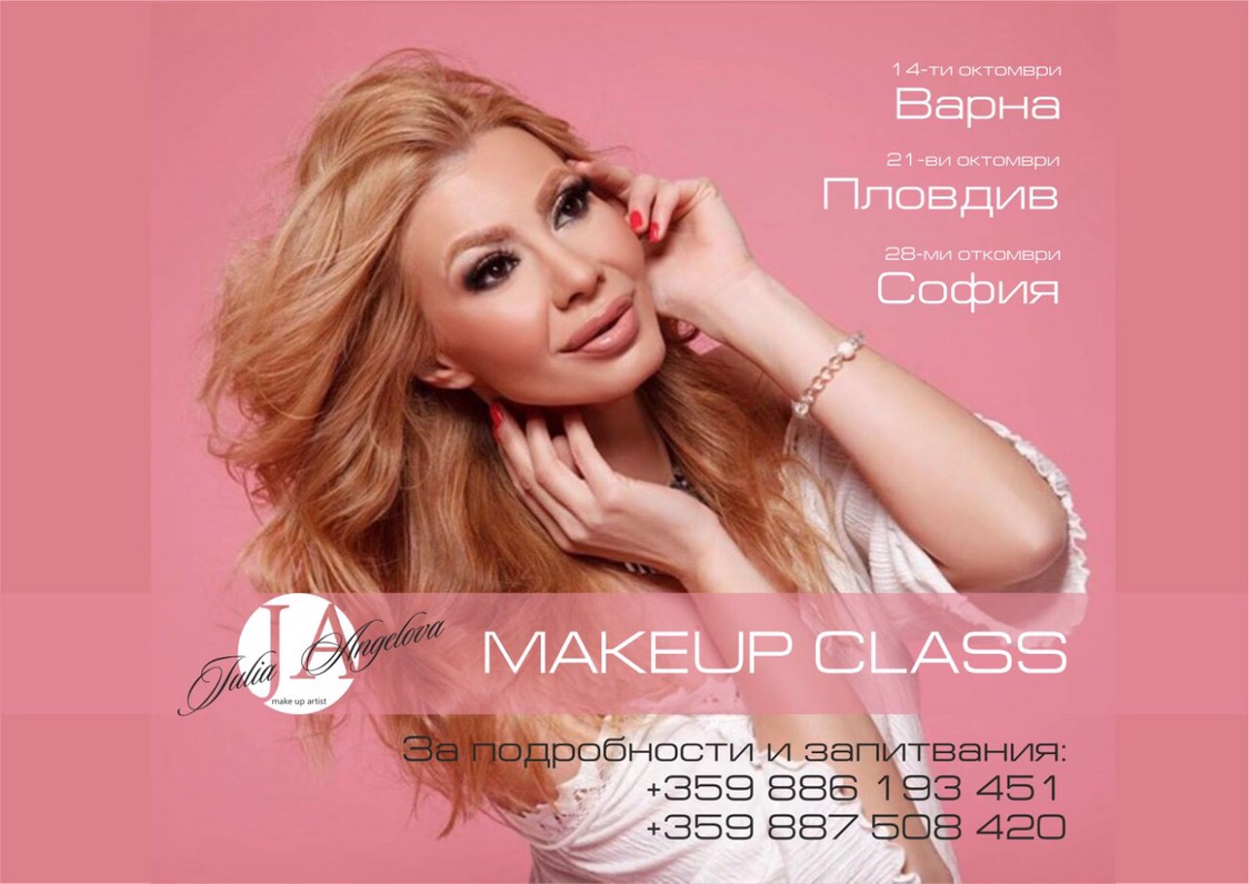 Подробности за Makeup class-а във Варна, Пловдив и София ще намерите на Facebook страницата Julia Angelova Makeup.