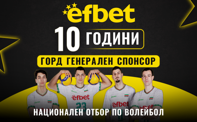 От десет години генерален спонсор на Българската федерация по волейбол и Националните отбори на България – мъже и жени е efbet. Партньорството обхваща едни от най-важните събития и турнири в родния волейбол, подпомагайки развитието на спорта на национално и международно ниво.