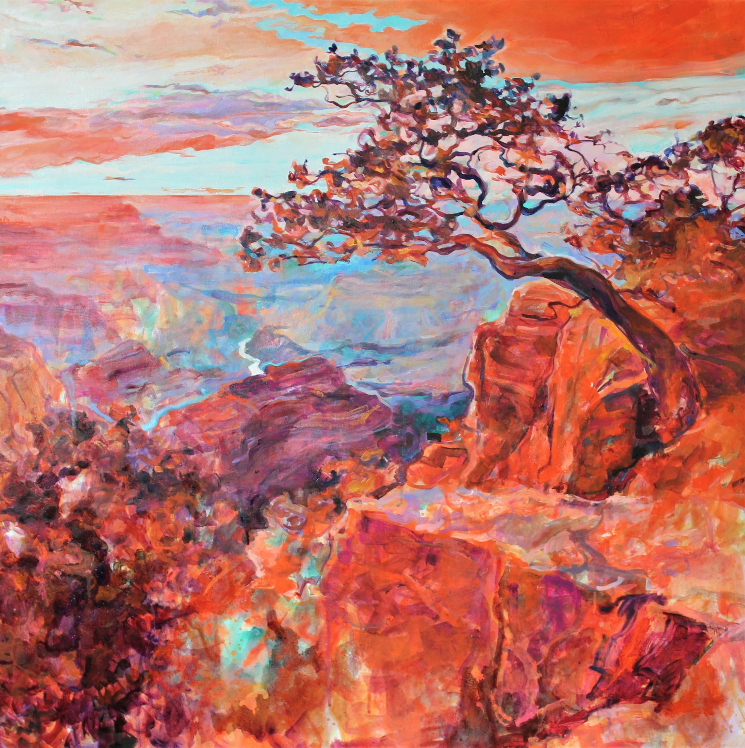 Когато решава да нарисува Гранд Каньон Дейвид Хокни избира да работи по спомен, за да може да предаде онова особено състояние всред безкрая. Вярвам, че мнозина от вас са изпитвали това планинско усещане – силно изнесените в хоризонт и вертикала елементи от пейзажа си играят със сетивата. Чувстваш се леко замаян, все едно се смаляваш и почти се разтваряш в необятното пространство. Озоновата синева има вкус и хладни капчици поръсват страните ти. Подобни сензитивни, почти тактилни видения каня в ателието си.
