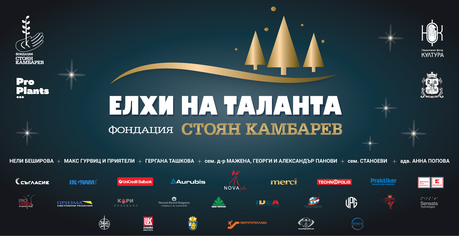 Основна заслуга за успеха на коледната благотворителна инициатива има лидерът в ландшафния дизайн и озеленяването г-жа Петя Нановска (PROPLANTS), която за трета поредна година прави най-голямото дарение, а именно всички красиви живи двуметрови елхи.