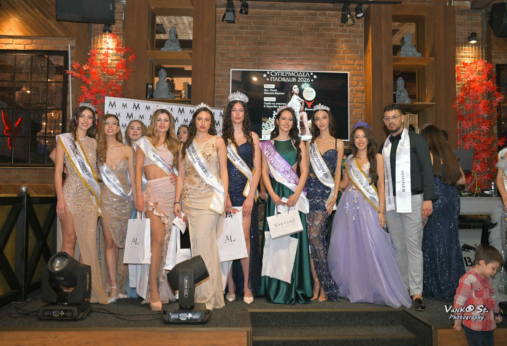Светлана Игнатова – Супермодел Пловдив Universe 2026, Миглена Тодорова – Супермодел Пловдив 2026 – Model Winner, Теодора Печилкова – Супермодел TOP Model 2026, Катя Дукова – Короната на публиката с над 400 онлайн гласа, Рая Башова – Супермодел Тийн 2026, Йори Йовчев – Супермодел 2026 – Man Category