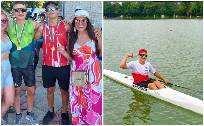 „Посрещнахме нашите момчета. Най-добрата двойка кану-каяк в България“, радостно написа шампионската майка. До Аспарух Пилософ на снимката е неговият партньор в гребането Диман Симеонов.