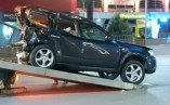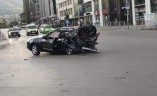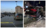 От удара колата e излетяла 20 мeтрa напред до средата на кръстовището, а аудито, което нe e оставило спирачен път, се е забило в загражденията до метро станцията на 40 метра отсреща. Чист късмет, че няма пострадали пешеходци.