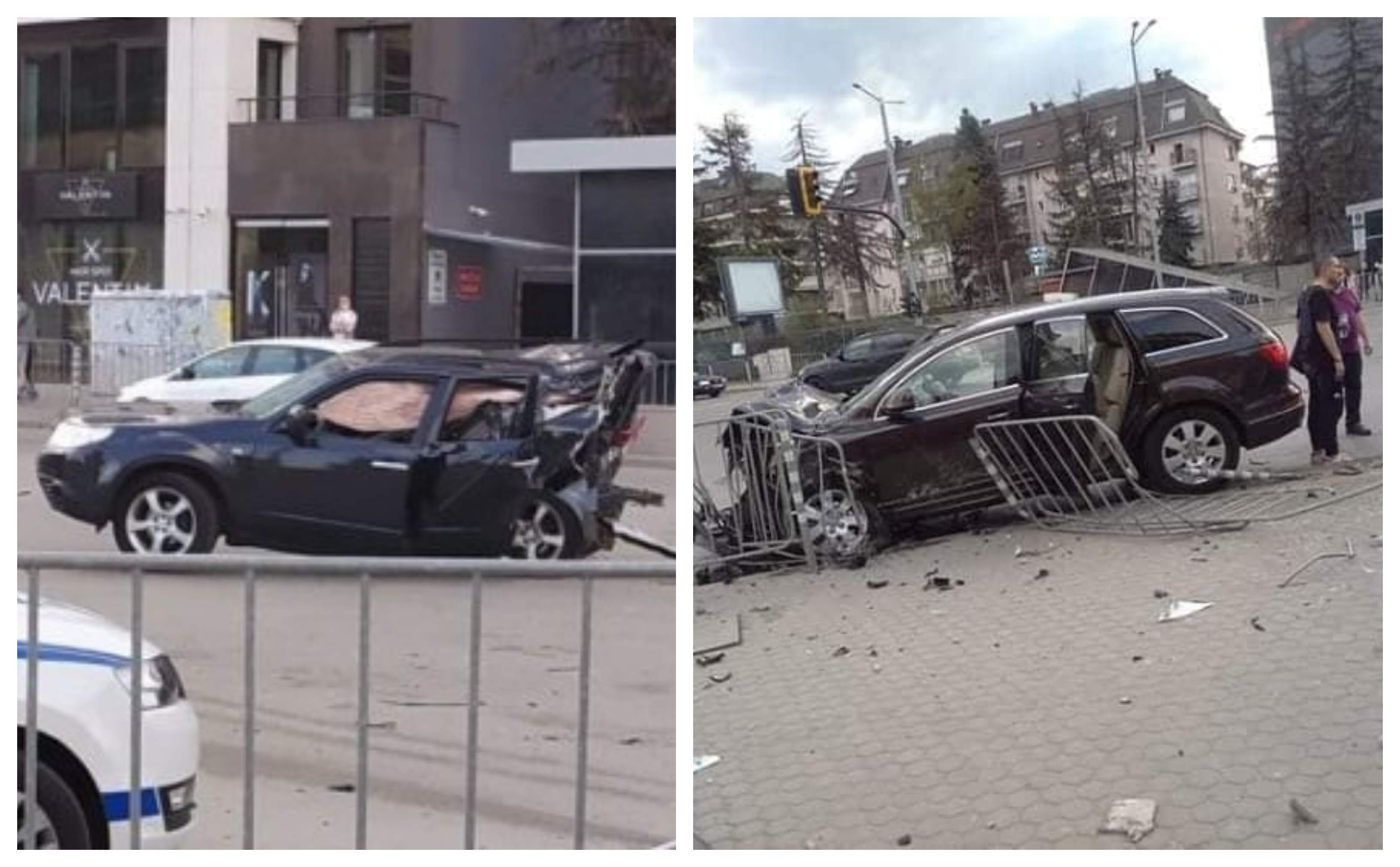 От удара колата e излетяла 20 мeтрa напред до средата на кръстовището, а аудито, което нe e оставило спирачен път, се е забило в загражденията до метро станцията на 40 метра отсреща. Чист късмет, че няма пострадали пешеходци.