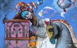 През последните две години започнах да усещам цветовете по начин, който ме промени и който ме преоткри. Цветовете избухват като сън. Животните са двойници и пазители, а фигурите разказват за вътрешното дете – уязвимо, но силно. Композициите са театрални, мислени седмици наред. Без бягство. Това не е приказка. Сънят е мястото, където подсъзнанието среща сенките и цветовете, за да разкаже истории и да зададе въпроси.