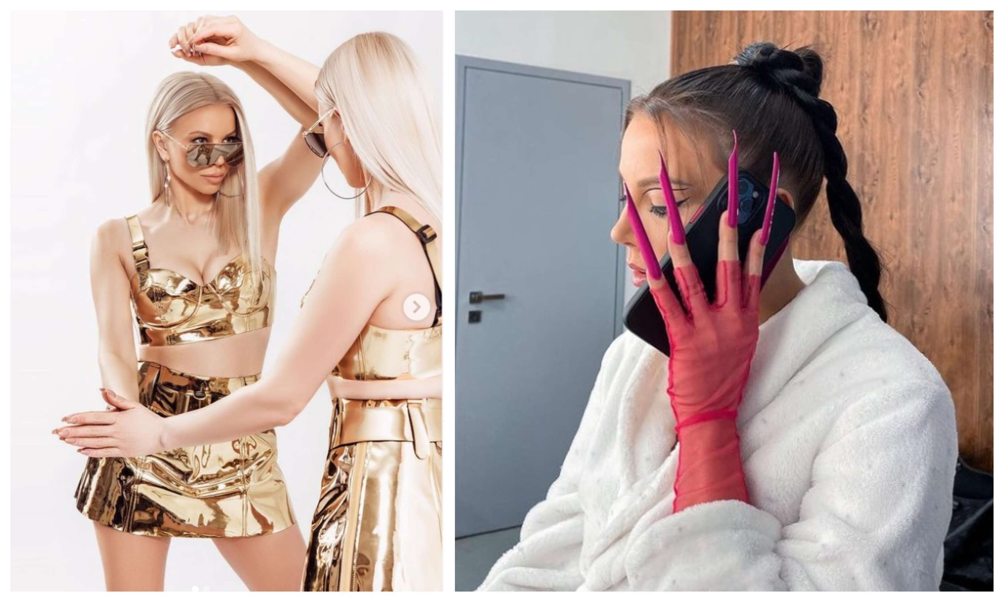 Поп фолк певицата се опита да оригиналничи представяйки на фенмасата си своята напреднала бременност. Екс-пайнерката покри тялото си с розова PVC отливка, а от пръстите ѝ стърчат зловещи нокти в същия нюанс.
