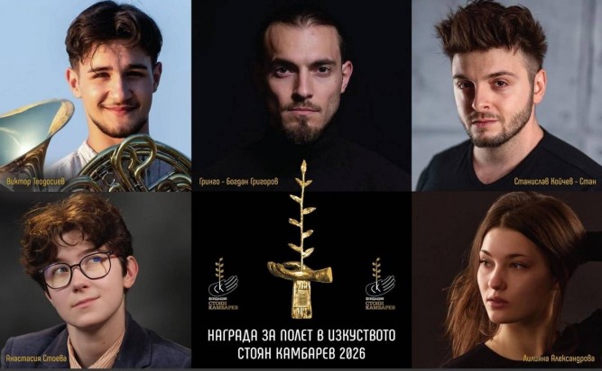На 20 април за 17-ти пореден път ще се състои Официалната Церемония за връчване на най-престижния и чакан приз за млади творци в България – Наградата за Полет в Изкуството "Стоян Камбарев". И тази година битката за голямата награда, носеща името на незабравимия театрален режисьор ще бъде повече от оспорвана заради силните кандидатури, ярки постижения и впечатляващи успехи на всеки един от петимата номинирани за мечтаната статуетка. Победителят ще получи прекрасната 3 кг. бронзова статуетка на Кольо Карамфилов и 5000 евро. Ето кои са изумителните пет млади творци, победители в различните области на изкуството и съответно номинирани за голямата Награда за Полет в Изкуството "Стоян Камбарев"2026. Те са различни, забележителни, оригинални и за нас е удоволствие да ви ги представим (по азбучен ред):