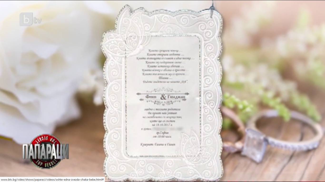 Картончето кани на венчавката в елитен столичен хотел с романтично послание за силата на любовта. Чалга наследникът Стораро събира 600 гости, сред които най-известните певци от България, Сърбия и Гърция, в това число и легендарният Василис Карас.