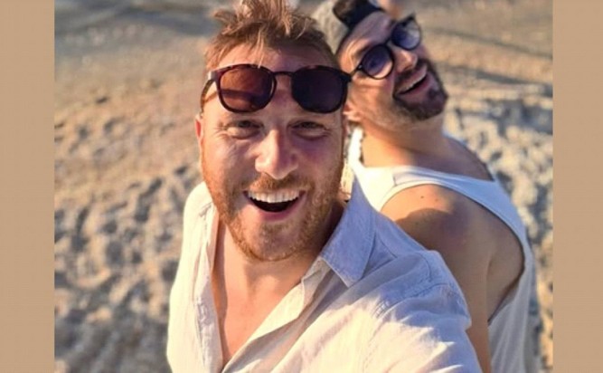 За огромно съжаление на многобройните им фенки, двамата актьори не издават местоположението си са, но се вижда, че плажът е спокоен и липсва навалица.
