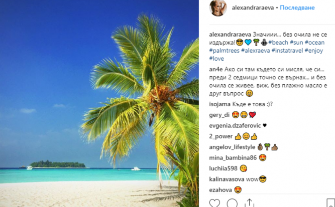 Красавицата е избрала за пореден път Малдивите, където отдъхва и през зимата на 2017-та с приятелката си и колежка Мария Игнатова.