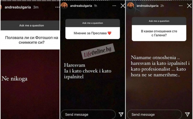 След раздялата на Андреа с „фирмата“ се заговори и за разрив в отношенията й с нейните колежки и най-големи конкуренти Преслава и Галена.