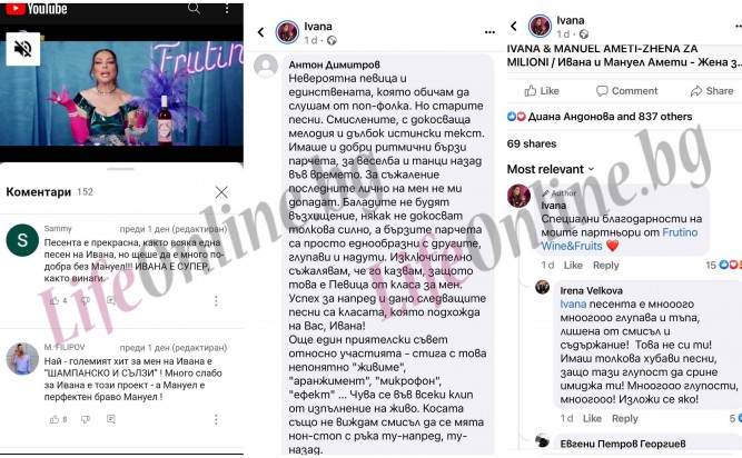 "Егати... бозата", написа Сани под публикация с линк към видеото на песента на Певицата на народа. Думите й получиха одобрение, че последният проект на Ивана е провал.