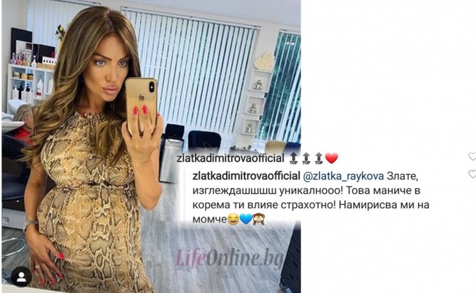Черната Златка написа под снимка на Русата: "Злате, изглеждашшш уникалноо! Това маниче в корема ти влияе страхотно! Намирисва ми на момче".