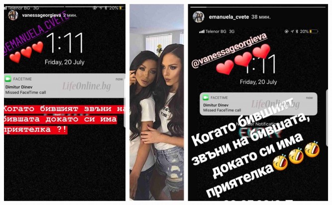 „От какво ли отчаяние трябва да си обзет за да звъниш на бивша, с която нищо не ви свързва, освен другата бивша, а на всичко отгоре си имаш нова приятелка?!“, се питат последователите на двете екс половинки на Димитър Динев, Емануела и Ванеса.