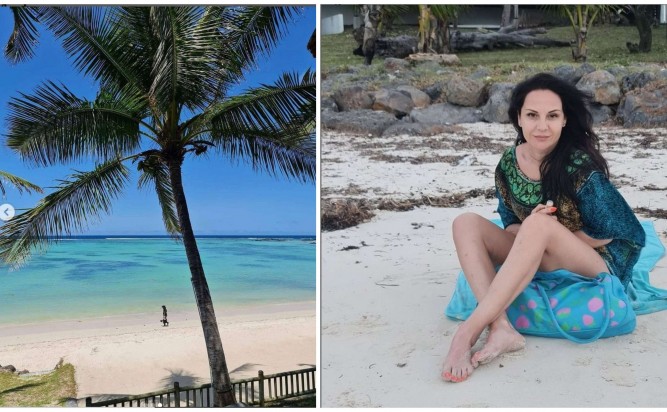 49 годишната дама успя да привлече вниманието в социалните мрежи, като се появи в плажно облекло от екзотичния остров Мавриций, където посрещна Свети Валентин.