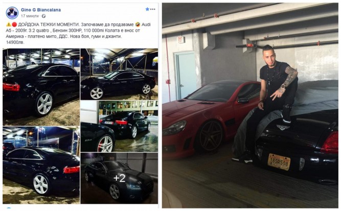 "ДОЙДОХА ТЕЖКИ МОМЕНТИ. Започваме да продаваме Audi А5 - 2009г. 3.2 quatro , Бензин 300HP, 110 000mi Колата е внос от Америка - платено мито, ДДС. Нова боя, гуми и джанти. --- 14900лв.", рекламира във Фейсбук автомобила за продан, който според запознати управлявала приятелката му.
