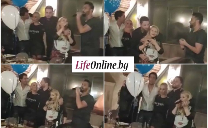 Поздрави и пожелания валят цяла вечер, а когато Джордан запява за компанията до него застават Деси и Благо, Елена и Ивелин Попов. Прегърнатите двойки не спират да се целуват, а Деси Слава припява на своя колега става ясно от видеото, до което се добра репортер на LifeOnline.bg.