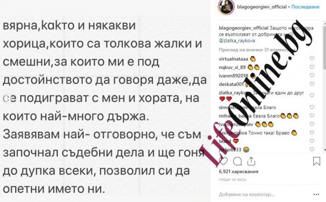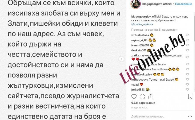 Екс футболистът и настояща плеймейт половинка Благой Георгиев по прякор Джийзъса изригна с изпепеляващ пост в своите профили в социалните мрежи срещу светските медии и жълтите издания, които му обръщат заслужено внимание.