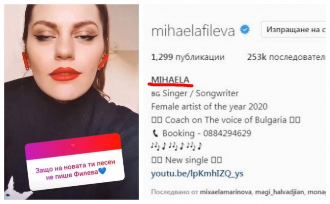 Михаела Филева поде битка за артистичния псевдоним „Михаела“ и вече няма да използва фамилията си, като за целта ще се представя само с първото си име.