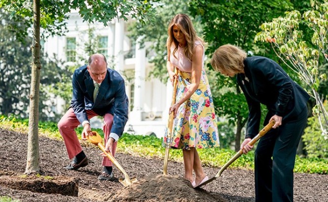 Съпругата на американският президент Доналд Тръмп Мелания засади президентско дърво на южната ливада на Белия дом, съобщава Daily Mail.