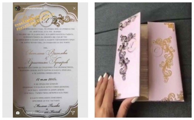 Новоизлюпената бизнес дама публикува поканата за сватбата на приятелката си с Гущеров, като така издаде доста подробности около тържеството.