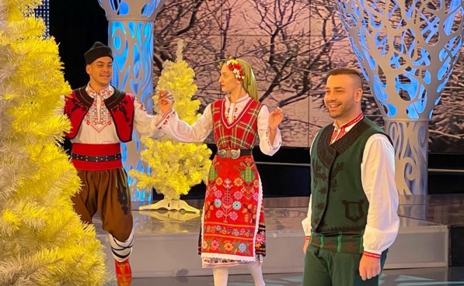 Заедно с него на сцената в празничната фолклорна програма на БНТ са и танцьорите на „Иде нашенската музика“.
