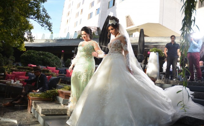 С уникалната рокля на дизайнерката Джулия Контогруни за 10 хиляди лева, булката напомняше на приказна принцеса, а петият месец от бременността й не се беше отразил на стройната й фигура. Младоженецът пък бе с изискан снежнобял костюм на Десизо Мони.