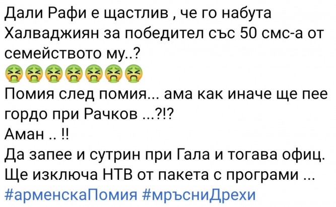 Фенското недоволство веднага изригна с постове и коментари в мрежата, като за пореден път продуцента Халваджиян бе обвинен в манипулация.