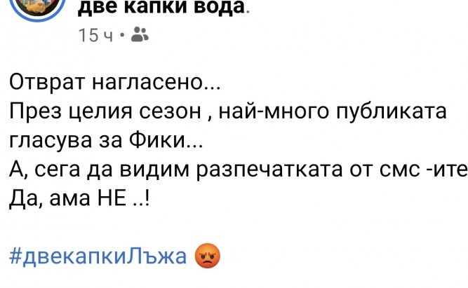 Фенове и приятели на Фики се обединиха около тезата, че синът на Тони Стораро е бил ощетен на финала на „Като две капки вода“, за да стане победител друг приближен до арменската фамилия изпълнител.