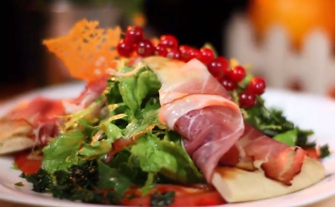 Бързо и професионално той показа с пресни продукти и малко въображение как могат да се приготвят ароматни и съблазнителни ястия като - пържени пилешки сърца с домати, пърленка с кайма, бонбони от пилешка кайма със млечно-майонезен сос, пица с прошуто, зелена салата с кълнове и прошуто и домашен нуга сладолед със сладко от смокини и листенца мента.