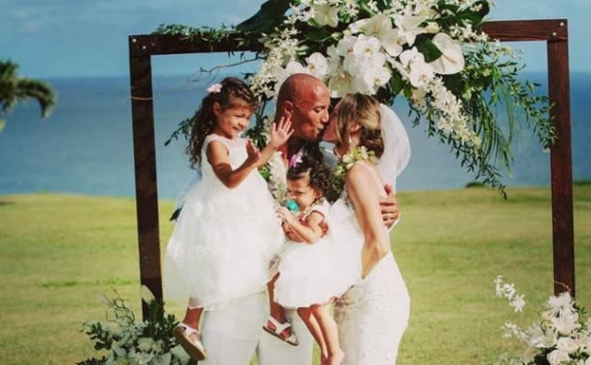 Мястото на венчавката не е било избрано случайно, тъй като известна част от живота си Скалата прекарва именно на Хонолулу, и сватба в хавайски стил е точно това, което може да се очаква от него.