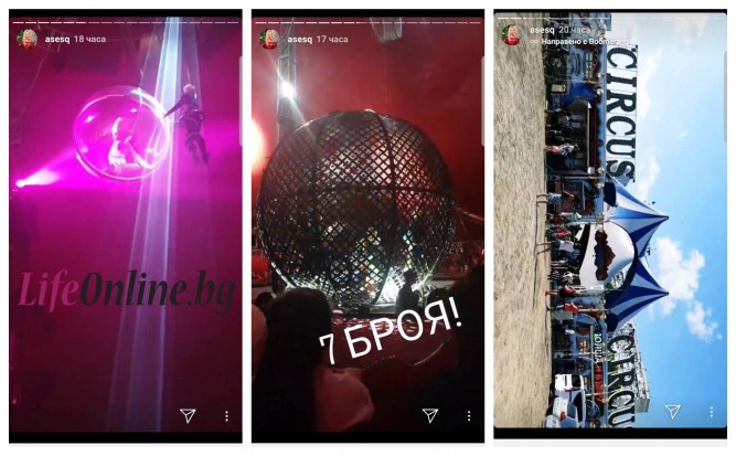 Плеймейтката и компанията й се настанили на първи ред в ложата под купола на пътуващия цирк. Макар че снимането по време на спектакъла е забранено, русото миньонче сподели няколко кадъра от представлението в своят Инстаграм акаунт.