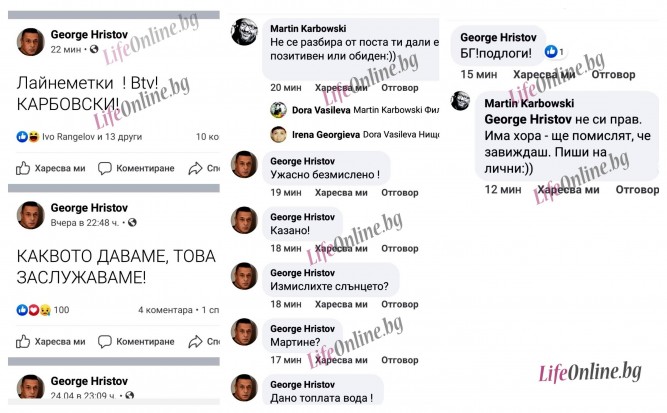Озадаченият Карбовски пита Жоро Христов „Не се разбира от поста ти дали е позитивен или обиден…“.